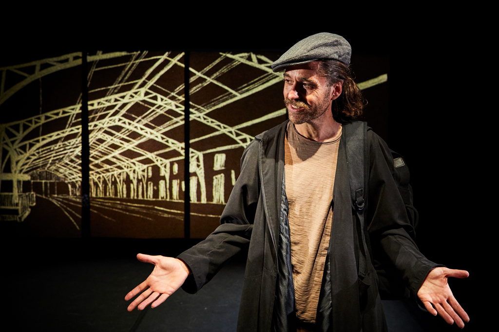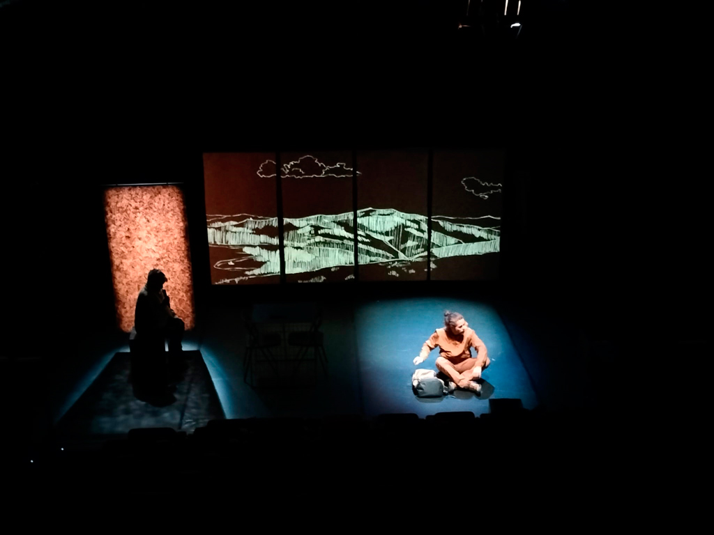 A nivel de espacio escénico nos planteamos, de entrada, una puesta en escena bastante austera en cuanto a escenografía y atrezzo, poner el mínimo de elementos imprescindibles y trabajar muy bien el imaginario evocador de las proyecciones animadas, que queremos que hagan un acompañamiento poético y visualmente artístico de los diferentes paisajes por los que transita la obra, ya sean paisajes reales con sus elementos naturales correspondientes o paisajes interiores emocionales de los personajes. Todo este imaginario visual animado debe ir de la mano y poner de relieve de manera artística la acción dramática de la obra.